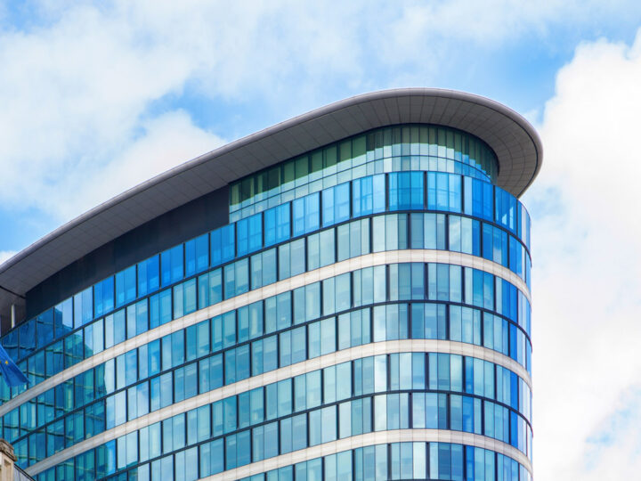 Oval shaped office building with glassy outlook. Aenean lacinia bibendum nulla sed consectetur. Praesent commodo cursus magna, vel scelerisque nisl consectetur et.